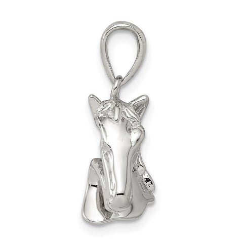 Kick up some fun with this horse head charm designed from sterling silver with a high polished finish. It is approximately 14mm (9/16 inch) in width by 21mm (13/16 inch) in length, which includes the tapered bail. Chain not included.