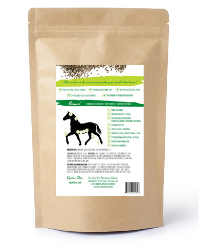 Mixes well with pellets or grain. or can be fed alone as well.  There is no need to soak or add water to the chia.